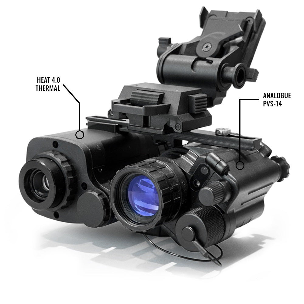 The G24 mount paired with our bridge rail allows you to bridge any aftermarket NVD with our HEAT 4.0 thermal monocular.